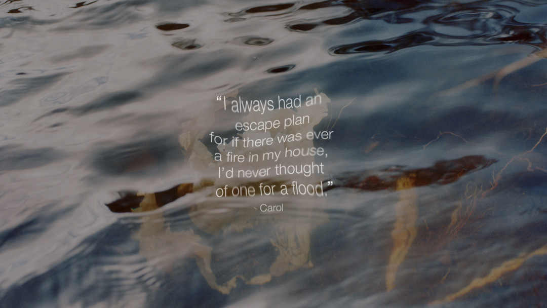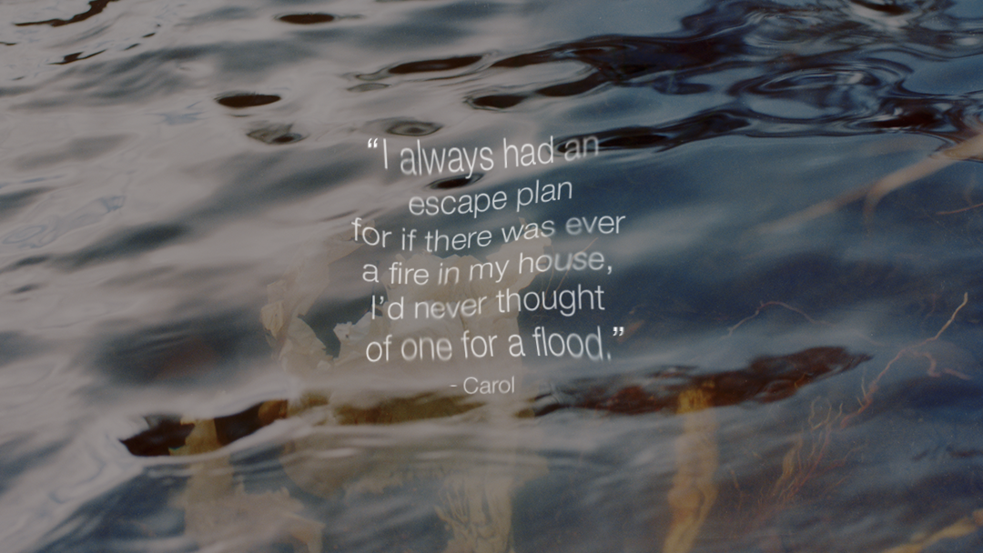 Carol lost many items of sentimental value to the flood, including videos of her children’s Christmas concerts. Unfortunately, that was only the beginning. Her experience with her insurance company was a long and frustrating ordeal and at one point, she considered re-mortgaging her house to pay for the repairs. “For a year I didn’t have any insurance because I didn’t know whether I could go through the process all over again,” she says.